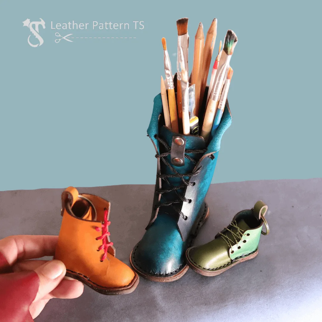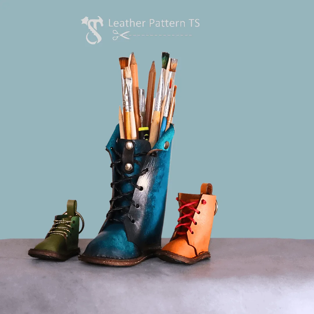 Leather boots pencil stand pattern with bonus gift keychains