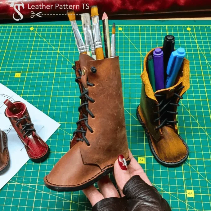 Leather Boots Pencil Stand Pattern – DIY Pen & Brush Holder