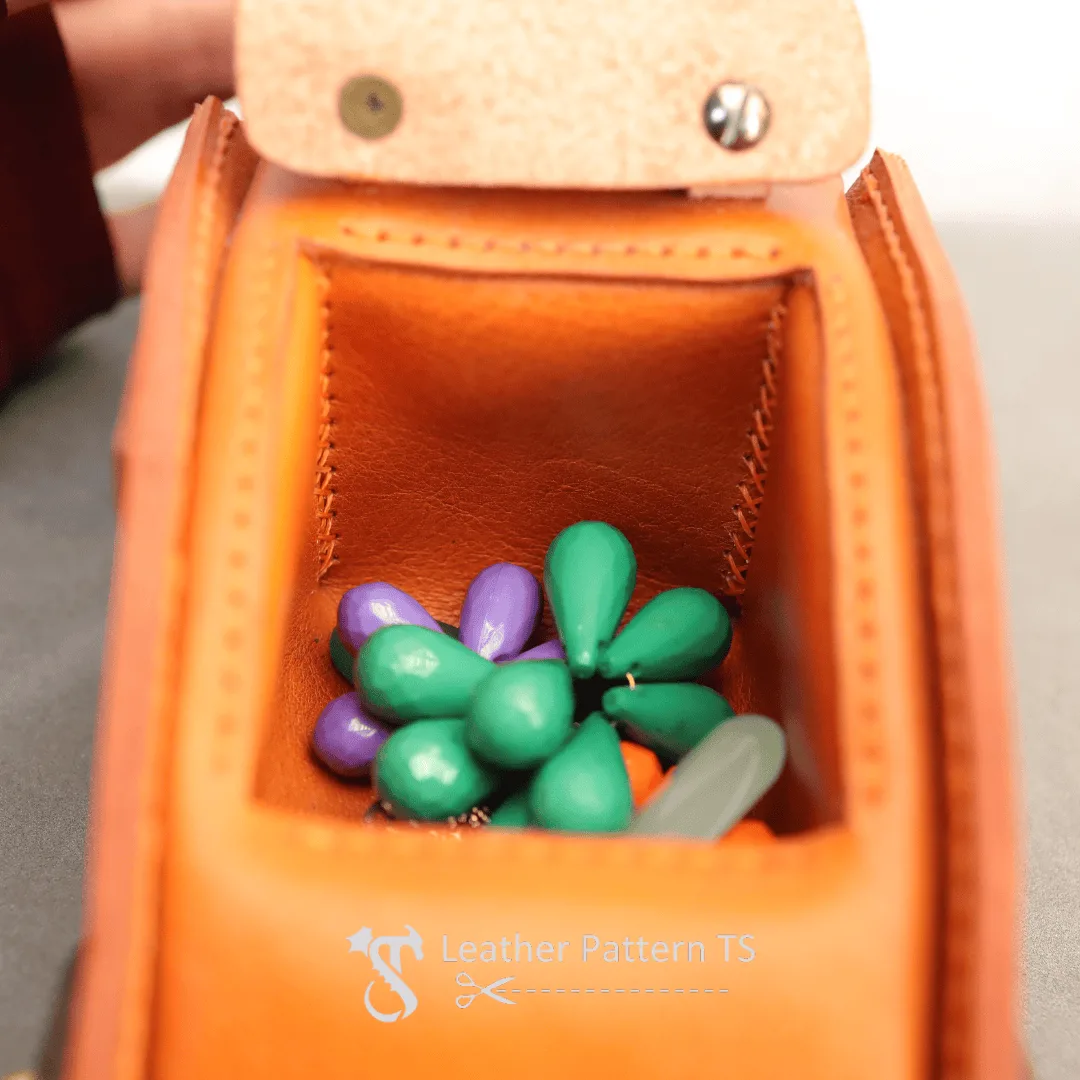 It also gives you flexibility: you can keep it in natural leather tones for a classic retro vibe, or dye it in brighter colors to give it a more playful look. Small hardware changes — like different rivets or wheels — can also completely transform the personality of your leather box pattern.