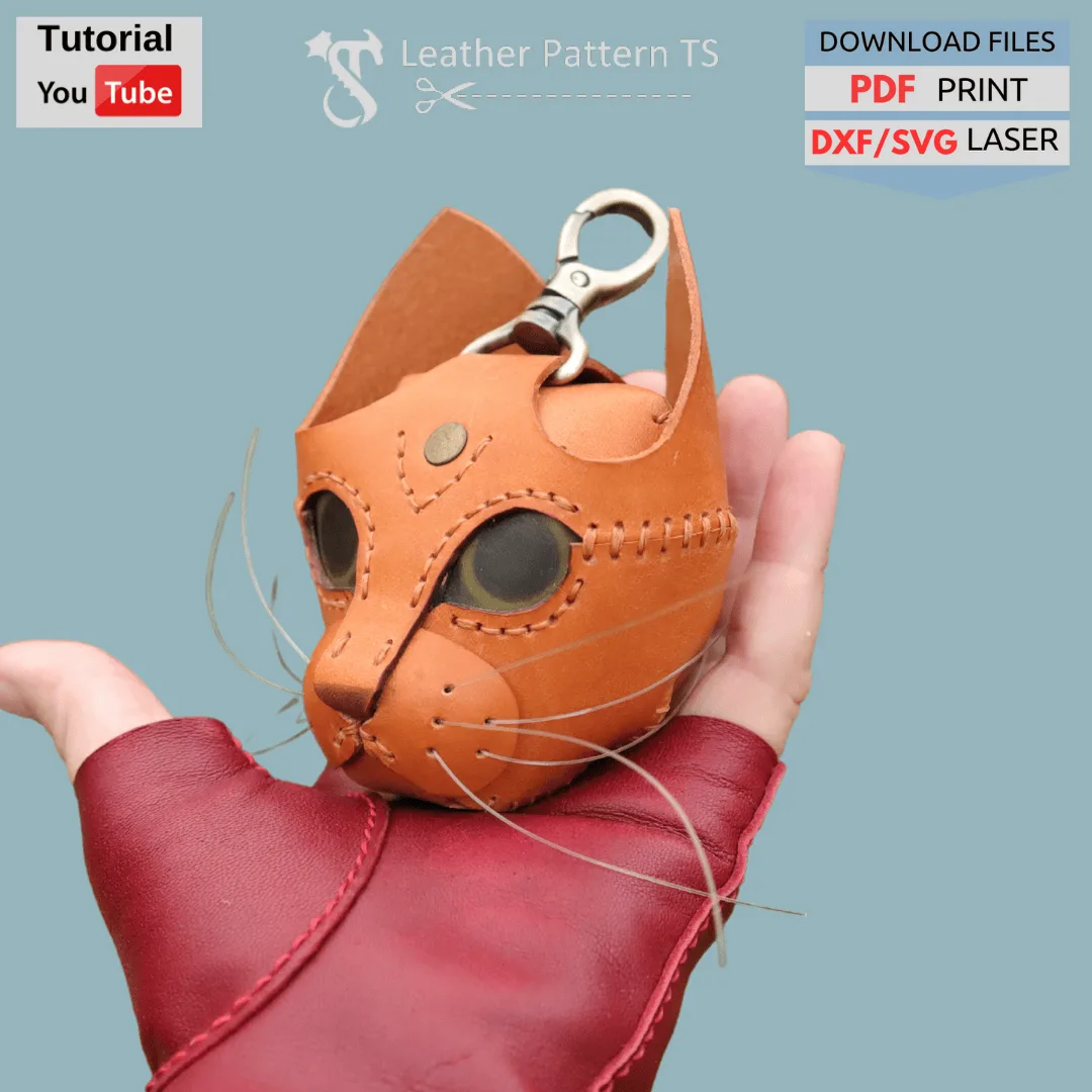 Make a cute leather cat mini wallet for coins and trinkets. Digital pattern with PDF (A4 + US Letter), SVG, DXF, and detailed video tutorial.