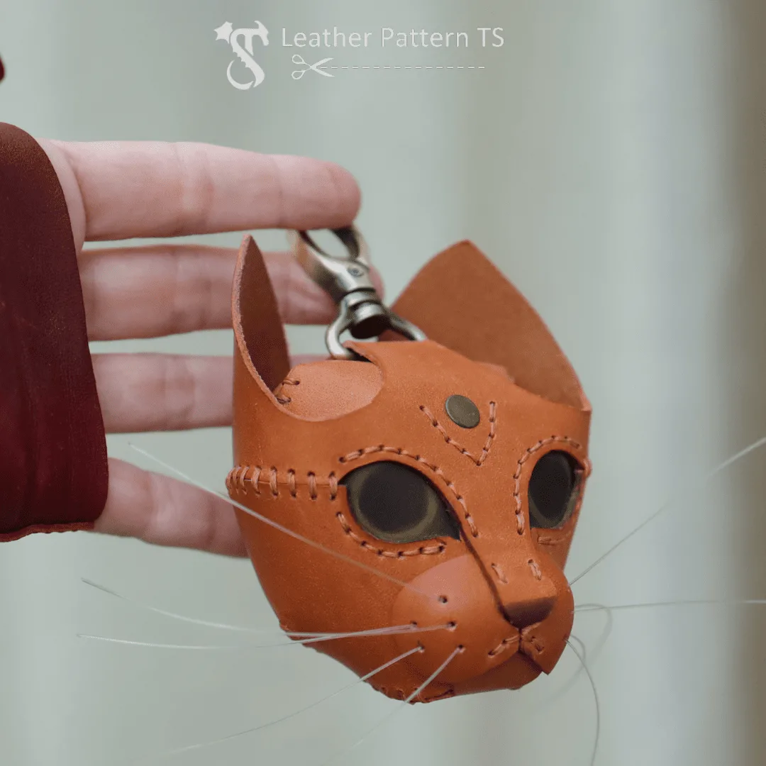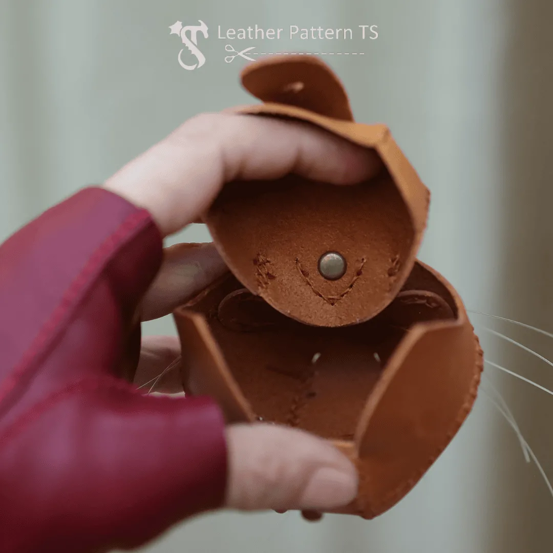 If you are looking for a playful and practical accessory, this leather cat mini wallet pattern is a project you will love. Designed as a charming cat head, it is perfect for holding coins, keys, or other tiny essentials. Whether you clip it onto a bag or use it as a pocket companion, this wallet combines creativity with everyday usefulness. Handmade from leather, it carries both durability and personality, making it a unique piece to add to your leathercraft collection.