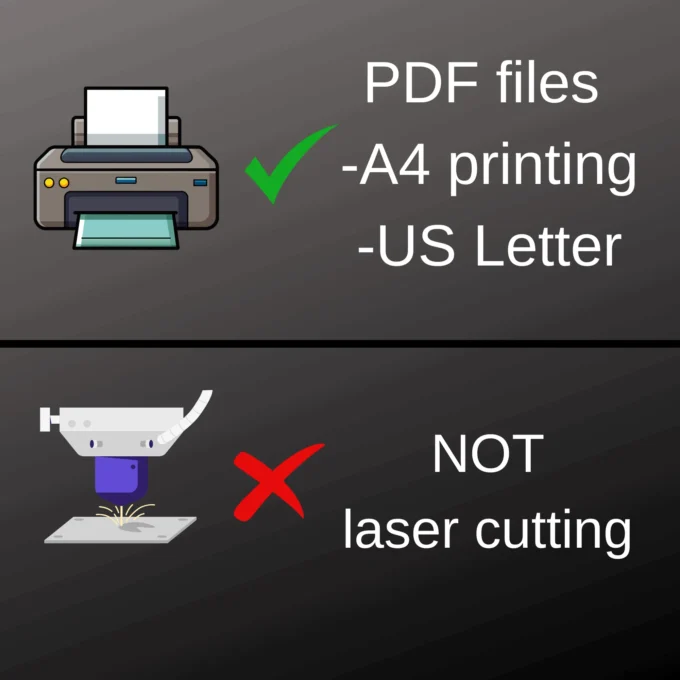 - PDF file for printing on A4 paper. This is a digital download. Not a physical item. Also, the file format is not suitable for laser cutting.