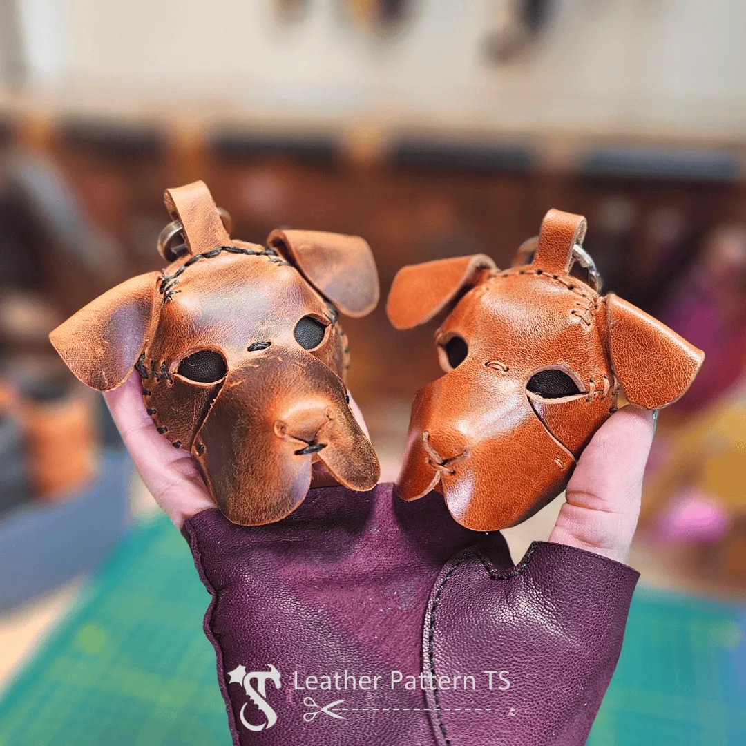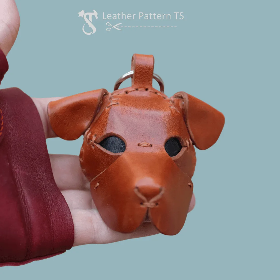 This leather dog head keychain template is highly customizable. You can match the leather color to your own dog, use contrasting thread for a playful accent, or add decorative stamping for extra charm. The small leather dog charm pattern is also a great idea for making sets – you could create several in different colors and give them as gifts or sell them at craft fairs.