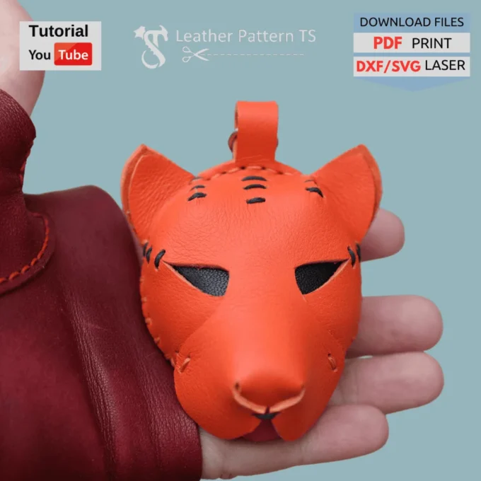This leather tiger pattern is a delightful way to turn even the smallest leather scraps into something functional and eye-catching. Designed as a cute tiger head, it works perfectly as a keychain, backpack charm, or decorative pendant for any bag. Small in size but full of character, this project is ideal for anyone who enjoys crafting playful animal-inspired designs that make people smile.