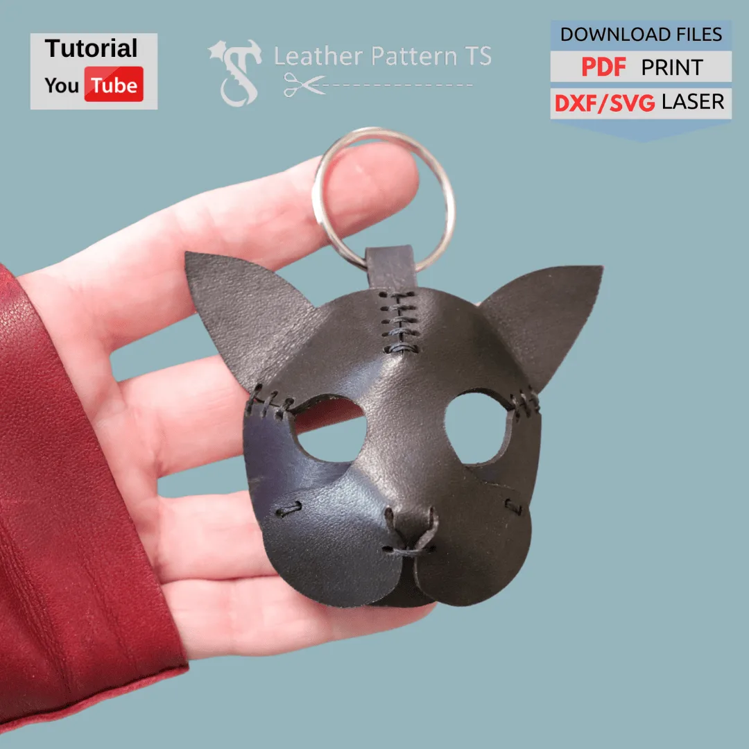 Printable set leather pattern cat rabbit keychain with templates for laser or printer (PDF, SVG, DXF). Fun DIY animal charms with step-by-step videos.